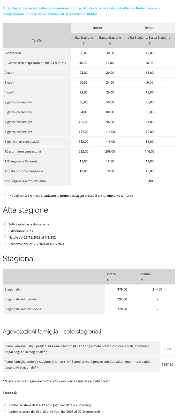 Skipass Piani di Bobbio Barzio Valtorta 2023/2024