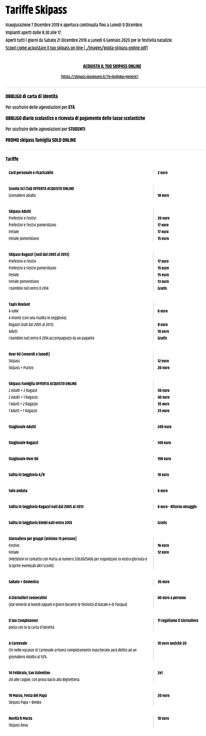 Skipass Pian Muné 2019/2020