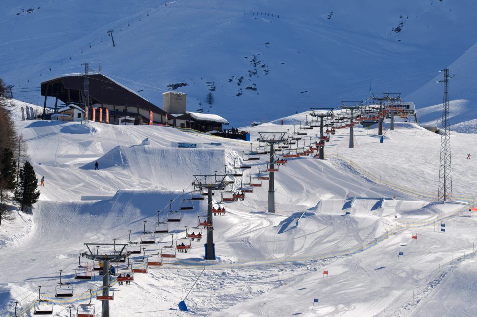 L'area dello slopestyle prevede kicker da 3,6,8,16 metri. Le stutture sono dell'azienda Doors e quest'anno ci sono cinque nuovi rail a completare il setup dello snowpark, le strutture in acciaio presenti saranno: uno piatto in discesa tre metri+sette metri, uno scatolato piatto di 6 metri, un tubo signolo di 9 metri, due box di 6metri alto 70 cm, un box di 9 metri alto 70 cm, un box stretto di 6 metri alto 90 cm, un butterbox di 4 metri, un butterbox di 8 metri, un box dyno e un cbox. L'orario del park è dalle 10 alle 16 supportato da un buon sound system per gasare i vostri nuovi trick al punto giusto Grazie all'innevamento artificiale e ai lavori realizzati sul terreno, il park è operativo dall'ultima settimana di novembre, in concomitanza con l'apertura degli impianti. Per non essere abitudinari ogni struttura evolverà e verrà rinnovata durante il corso della stagione per farvi trovare sempre qualche novità, quindi l'appuntamento per voi dovrà essere spesso per cercare sempre la struttura nuova!