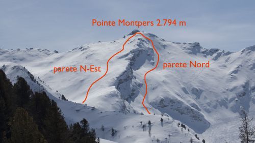Il punto di partenza con le pelli o la splitboard si può raggiungere prendendo la seggiovia Leissé e una volta in cima proseguendo a sinistra lungo la pista n. 9 e un raccordo che porterà verso un avvallamento naturale dal quale si può vedere bene la meta; l’alternativa è la seggiovia La Nouva al cui culmine si prende a sinistra e si segue la pista di raccordo verso un avvallamento dal quale partire.