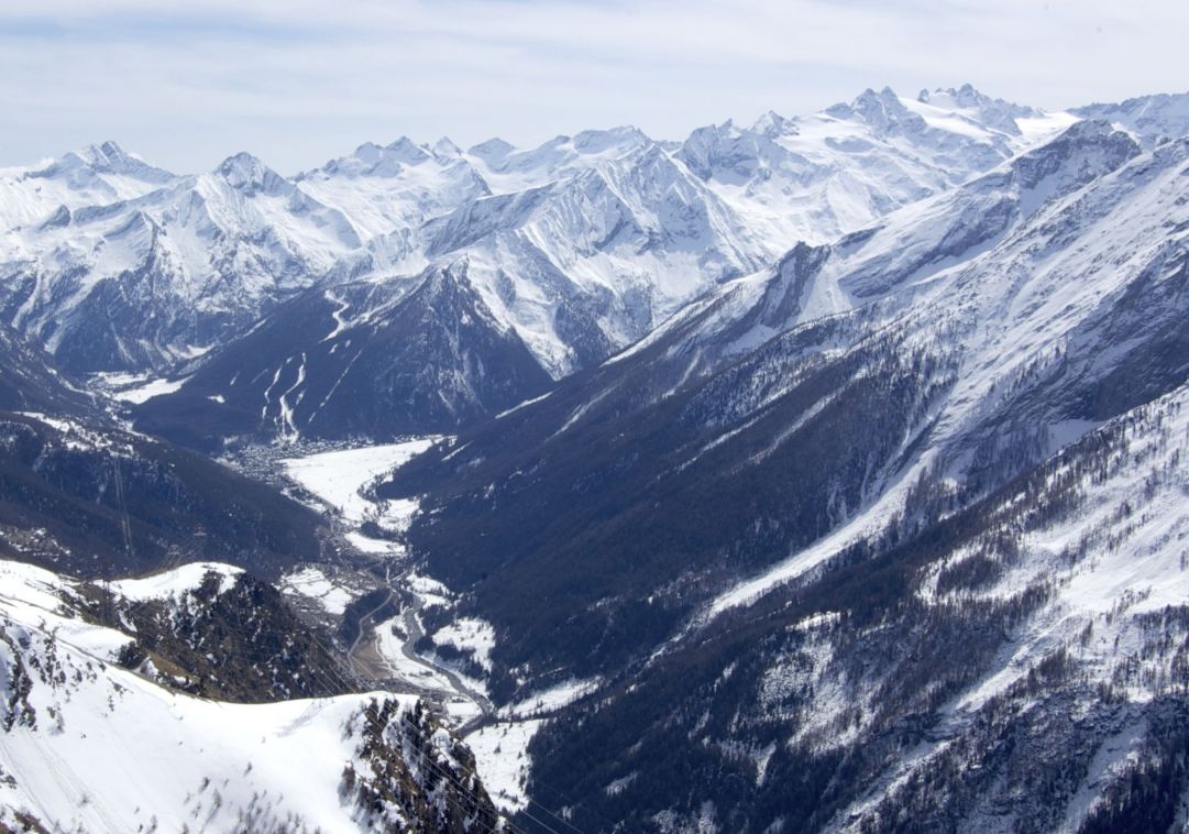 Qui il panorama è incredibile perché spazia su tutti i principali 4.000 della Alpi, dal Massiccio del Monte Rosa al Cervino, dal Monte Bianco al Gran Paradiso che domina la vallata di Cogne perfettamente visibile in tutto il suo sviluppo.