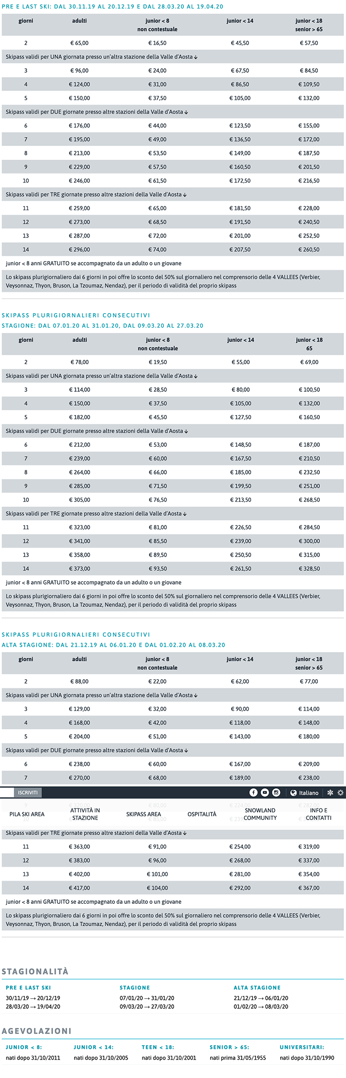 Skipass Giornalieri e ½ giornalieri 2019-2020