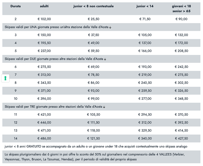 - Skipass Regionale Valle d'Aosta