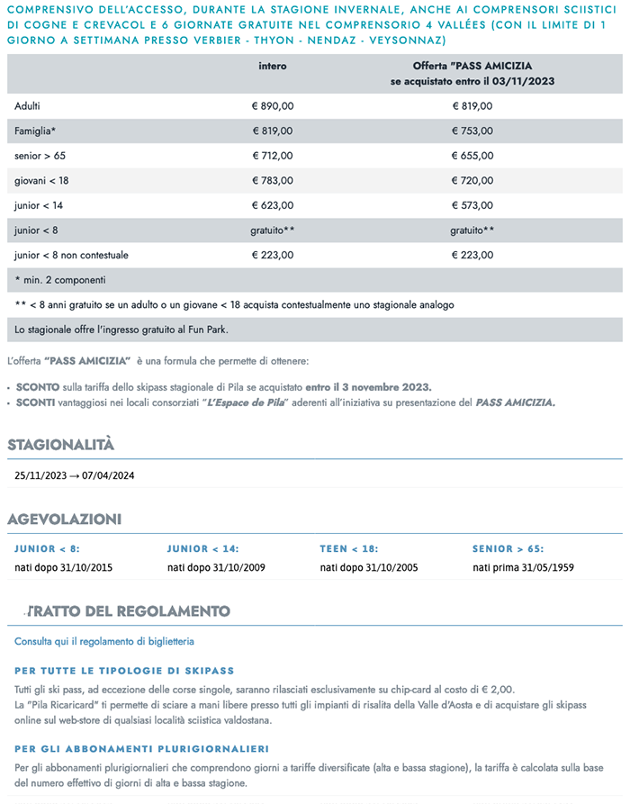 Skipass Pila 2023/2024
