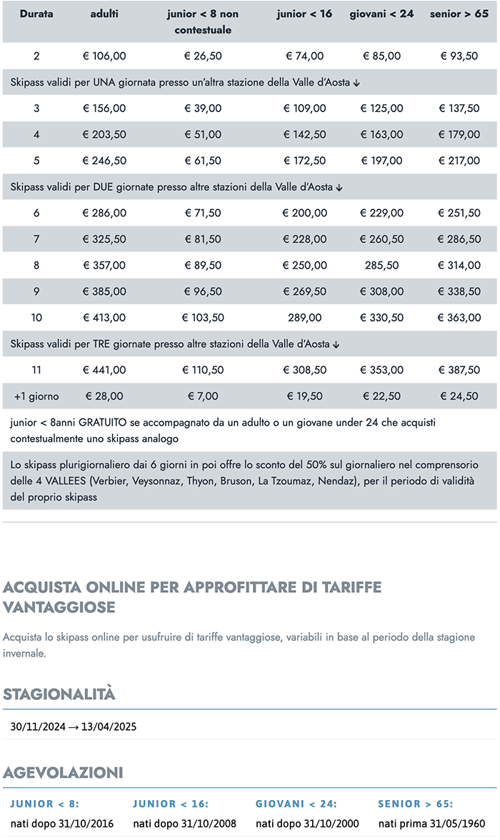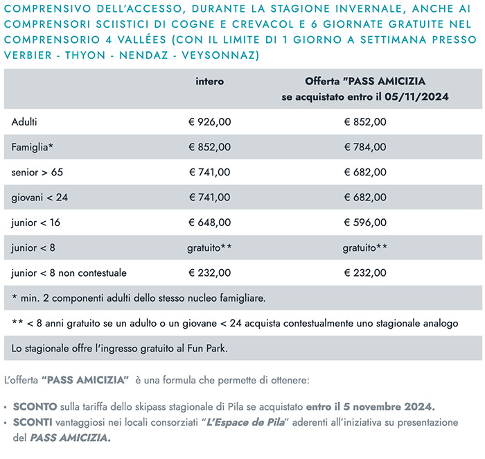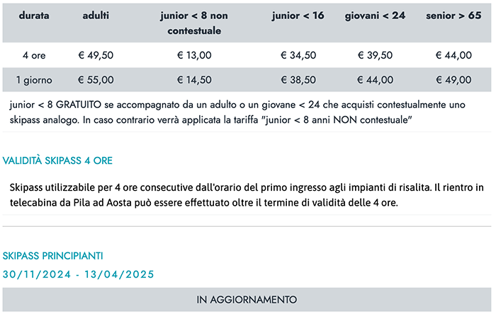 Skipass Giornalieri Pila 2024/2025