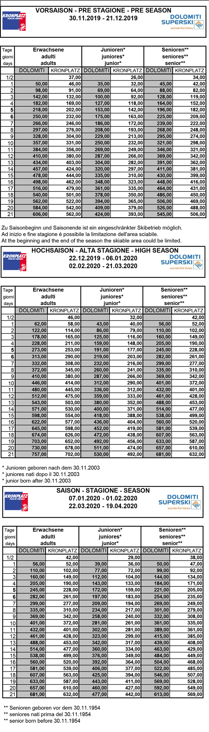 Skipass Plan de Corones Kronplatz 2019/2020