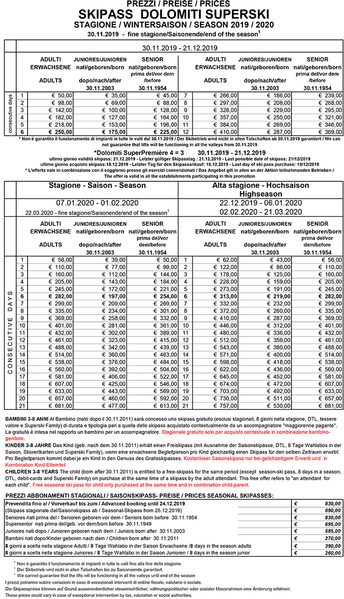 Skipass Dolomiti Superski 2019/2020