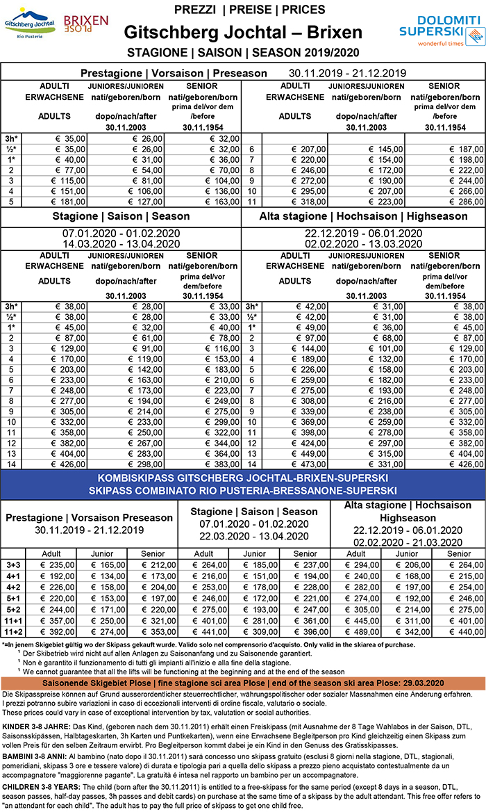 Skipass Valle Isarco Plose 2019/2020