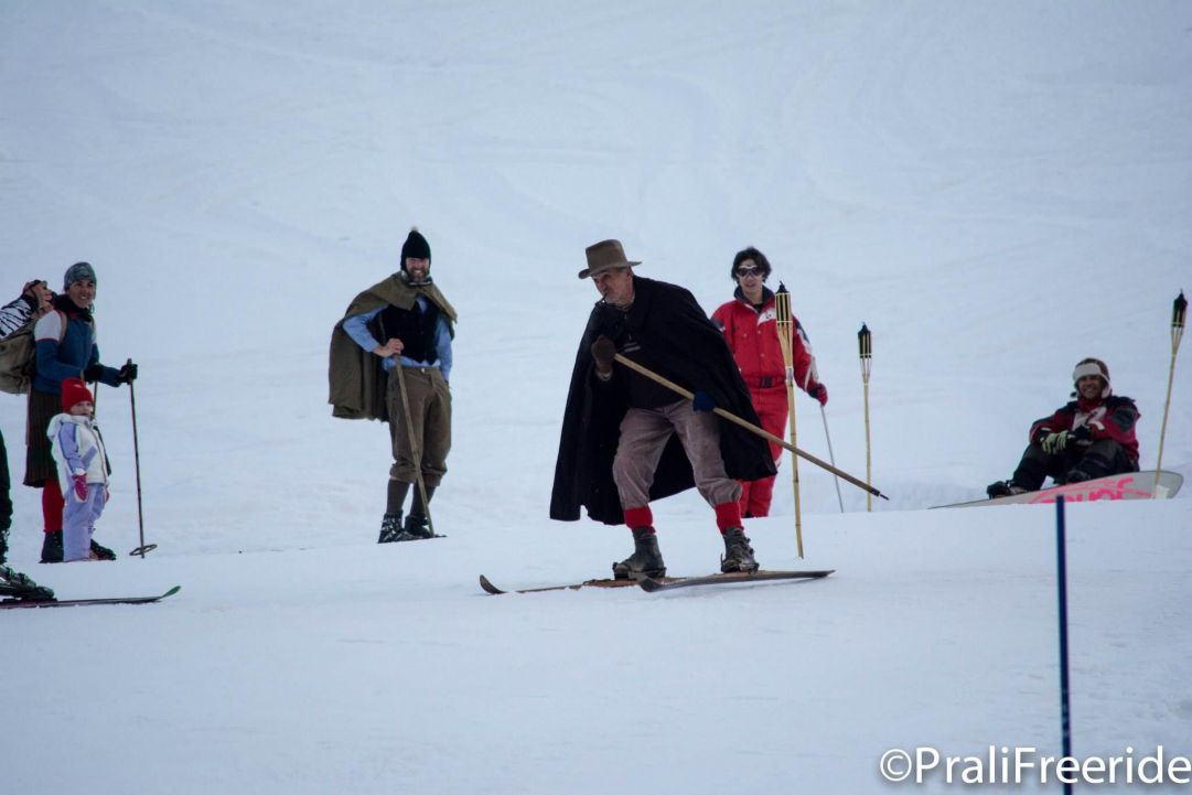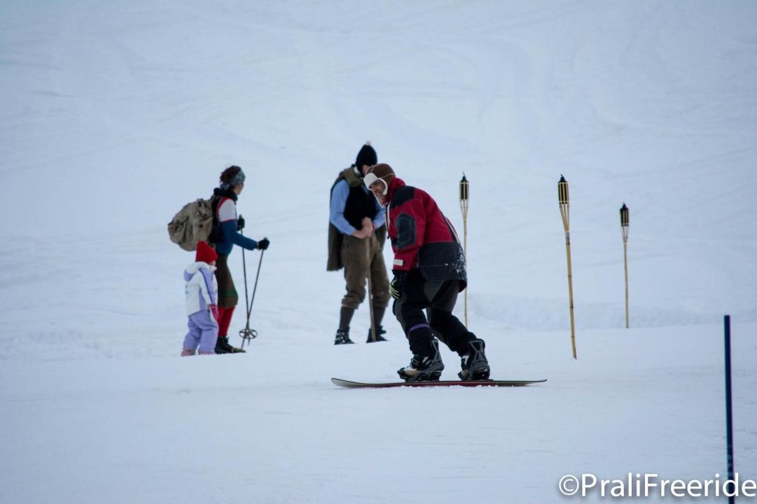 Uno slalom dimostrativo dove i partecipanti potranno scendere sia con gli sci di una volta sia con la tavola da snowboard e quindi con abbigliamento anni 80 trattandosi di uno sport più recente. Non sarà una vera e propria gara, ma una manifestazione dove tutti riceveranno un premio e, se il tempo lo permetterà, la discesa sarà contornata dall’atmosfera suggestiva delle fiaccole. Un evento da vivere in simpatia e da festeggiare tutti insieme al termine del quale sarà servito vin brulè  a tutti.