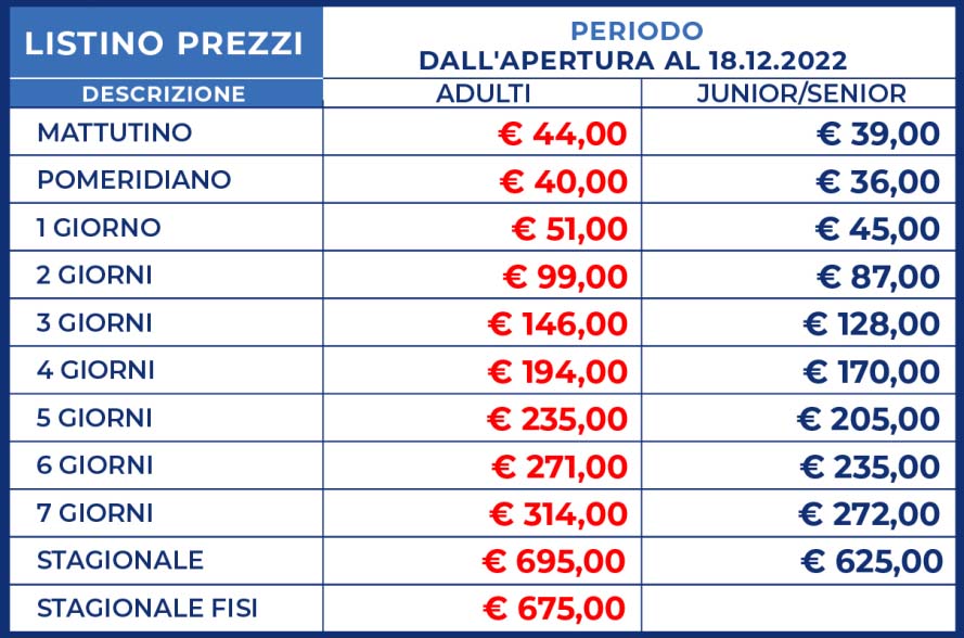 Skipass Pre-stagione Roccaraso Alto Sandro 2022/2023
