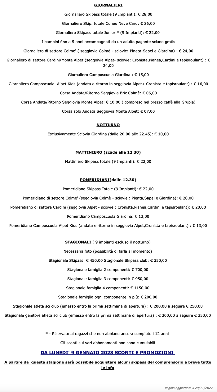 Skipass San Giacomo di Roburent 2022/2023