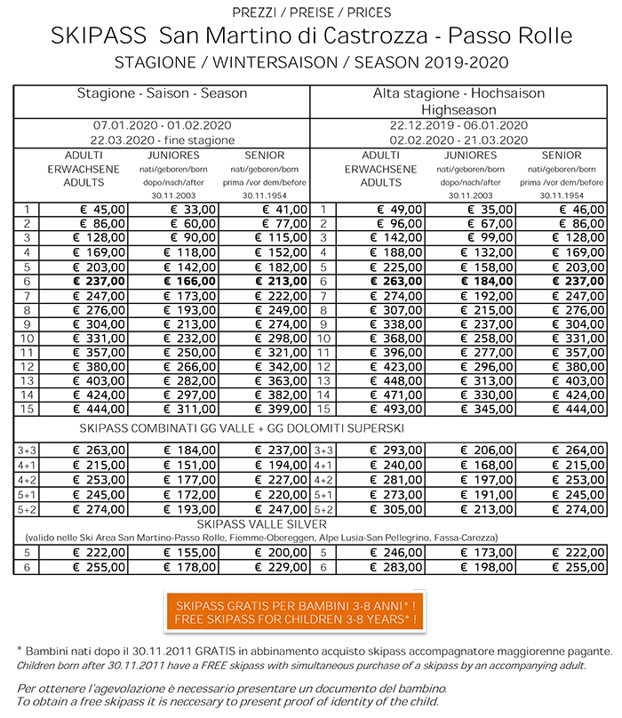 Skipass San Martino di Castrozza - Passo Rolle 2019/2020