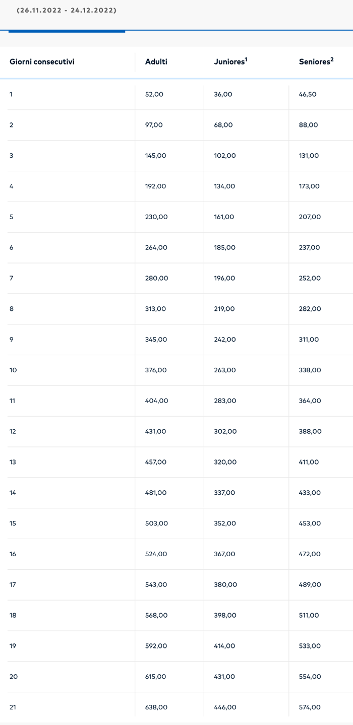 Skipass Alta Stagione San Martino di Castrozza 2022/2023