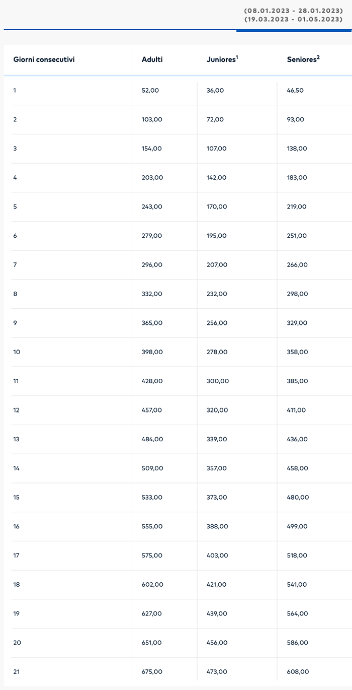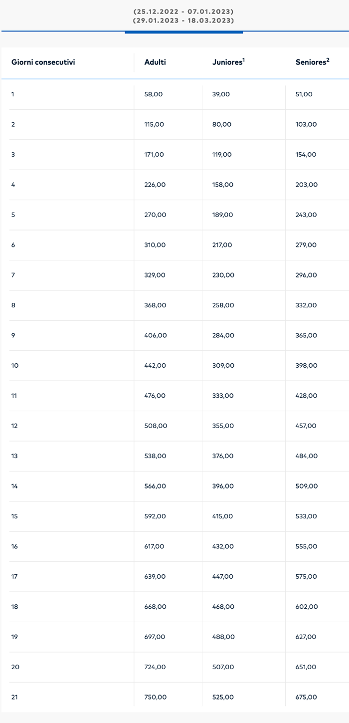 Skipass Stagione San Martino - Passo Rolle 2022/2023