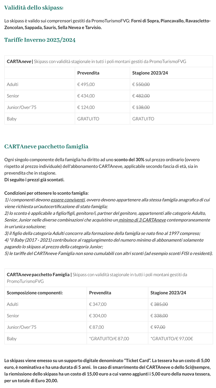 Skipass Stagionale Cartaneve Sappada 2023/24