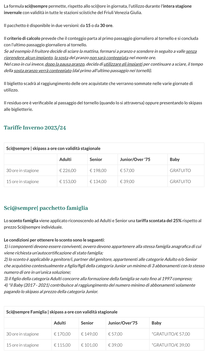 Skipass Giornalieri Plurigiornalieri Sappada 2023/24