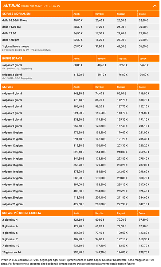 Skipass Ghiacciaio dello Stubai 2019/2020