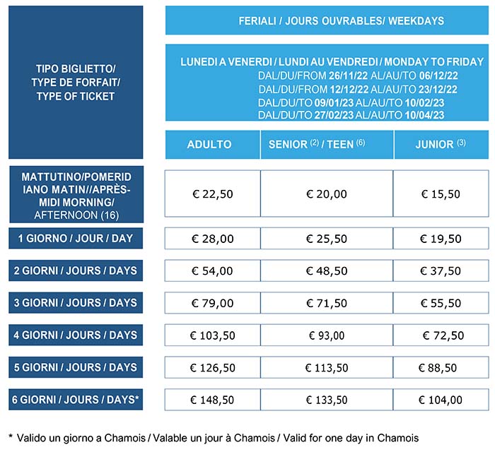 Skipass Feriali Torgnon 2022/2023