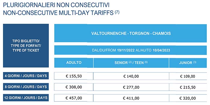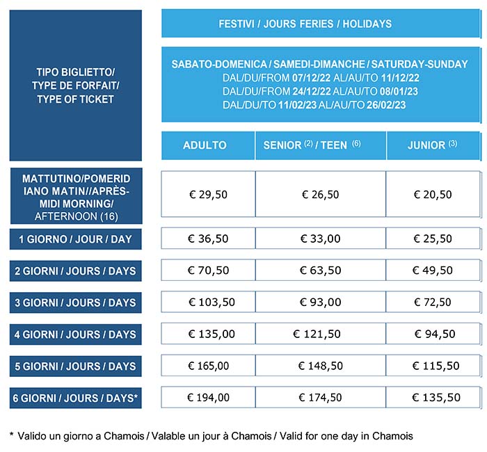 Skipass Festivi Torgnon 2022/2023