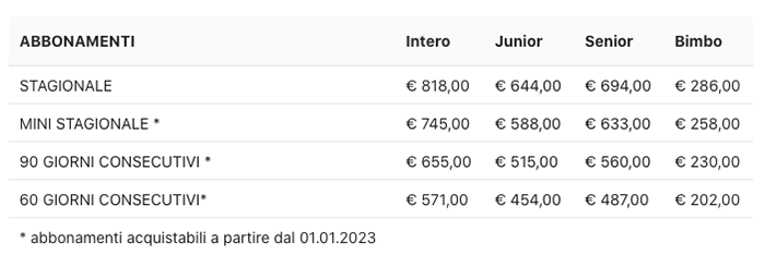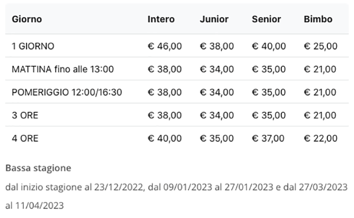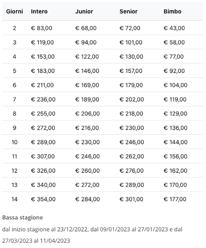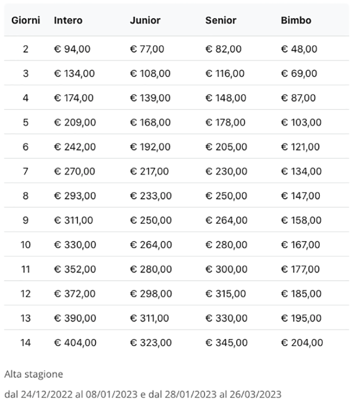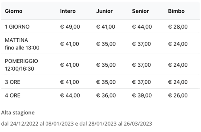 Prezzi Skipass