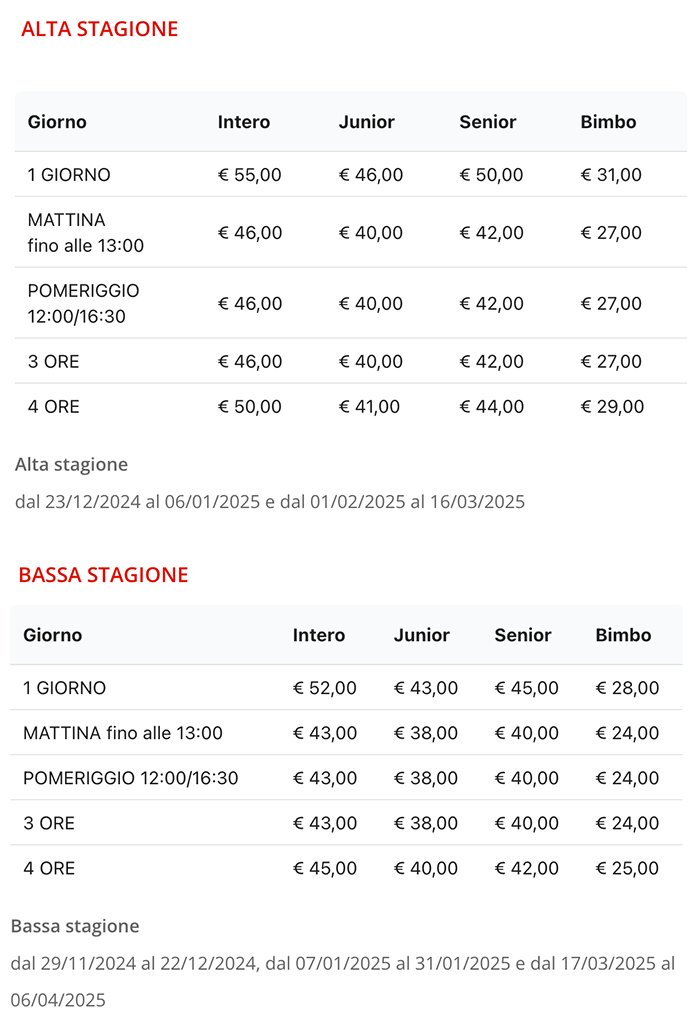 Skipass Plurigiornalieri Madesimo Valchiavenna 2024/2025