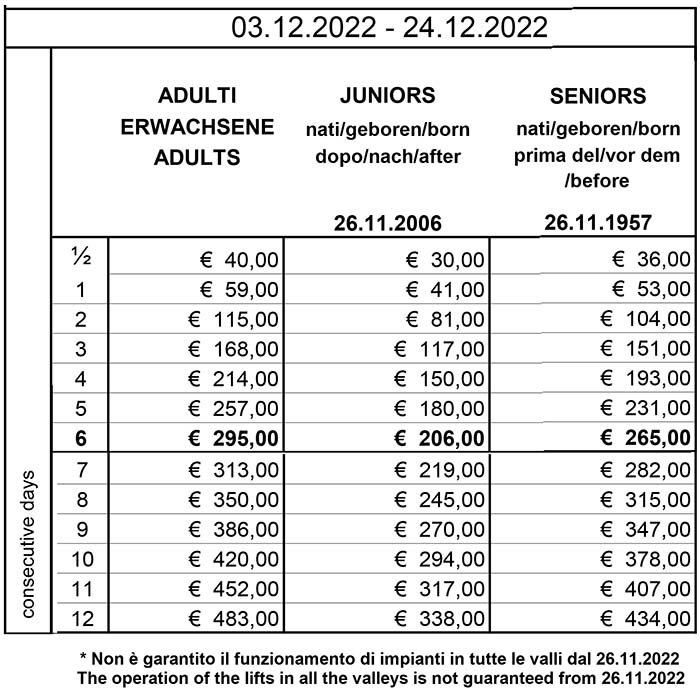 Skipass Val Gardena 2022/2023