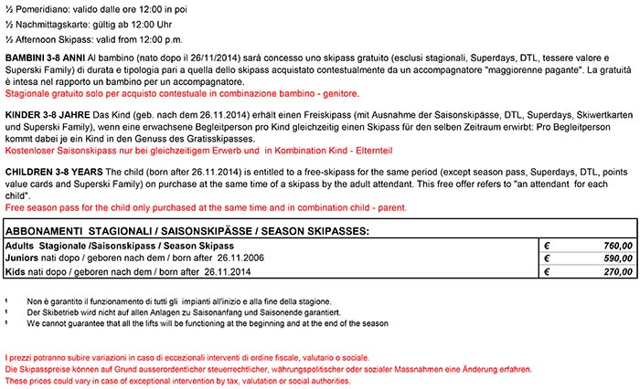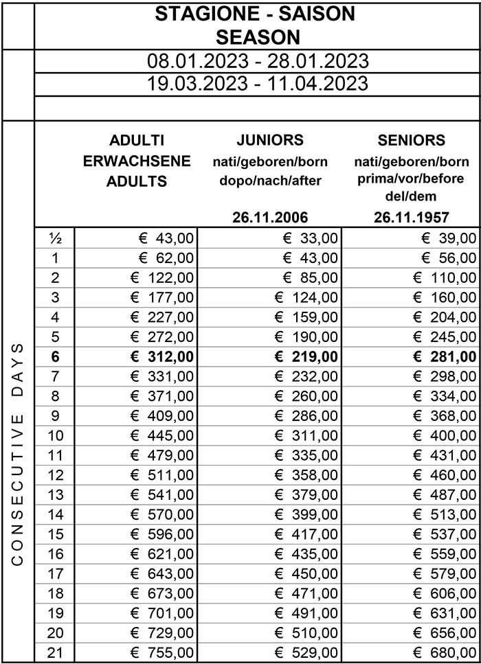 Skipass Stagione Normale Val Gardena 2022/2023