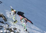 Tutti si attendevano una seconda tappa interlocutoria, con “appena” 1892 metri di dislivello, invece è stata una gara molto tirata e soprattutto decisa negli ultimi metri. La fuga fin dopo il via di Burgada e Jacquemoud ha costretto i leader provvisori della classifica Mardion e Lanfranchi a rincorrere, seguiti da Reichegger e Holzknecht. Il più brillante è stato Jacquemoud che più di una volta ha imposto il ritmo anche a Jornet Burgada. I due hanno continuato ad immagazzinare vantaggio tanto che alla fine dell’ultima salita, sul Sigaro, il distacco era di oltre 1’30”. Nel frattempo Lanfranchi faticava a tenere il passo di Bon Mardion e ricorreva al traino col cordino, ed era così anche per Holzknecht tirato dal compagno Reichegger. Nell’ultima discesa succedeva di tutto, mentre la coppia di testa si stava avvicinando al traguardo Jornet Burgada rompeva uno sci, Holzknecht, superato Bon Mardion, “volava” nella ripidissima discesa, quindi i sei di testa si ritrovavano tutti insieme al cambio pelli, pochi metri prima del traguardo. Reichegger e Holzknecht come due stambecchi levavano gli sci e si lanciavano in una corsa folgorante, e per loro è stato successo su Jornet Burgada e Jacquemoud per appena 2”, con Bon Mardion e Lanfranchi a 6”.