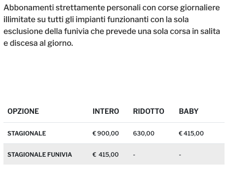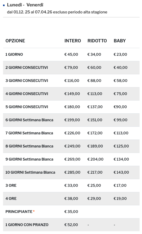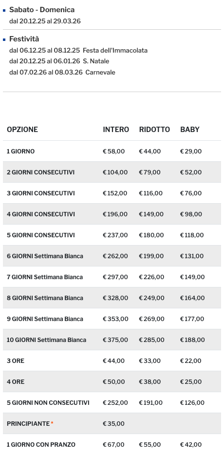 Prezzi Skipass