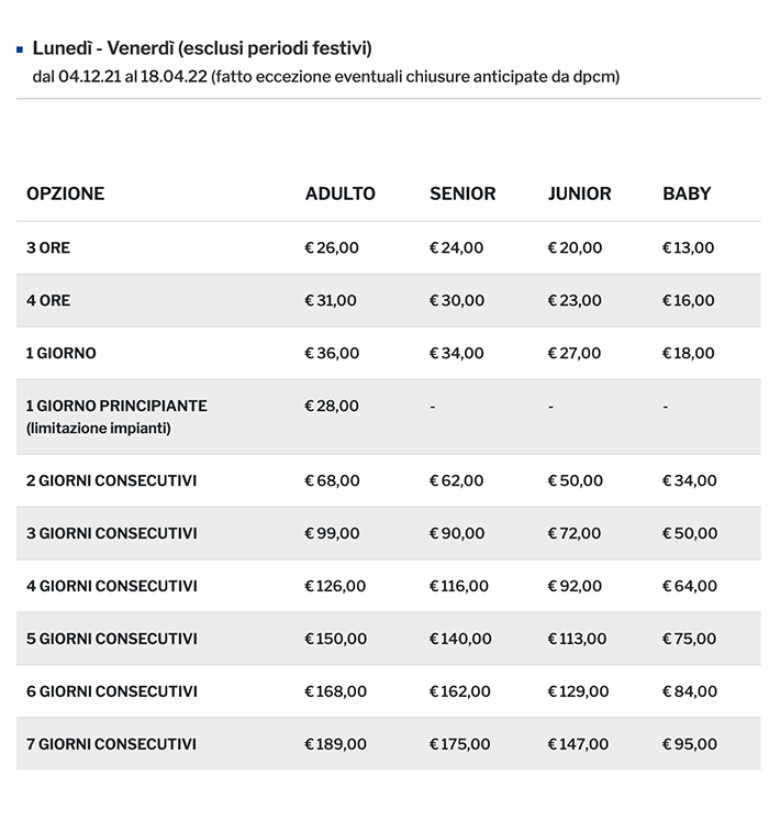 | Frabosa soprana | 7/7 | 20-160 cm |