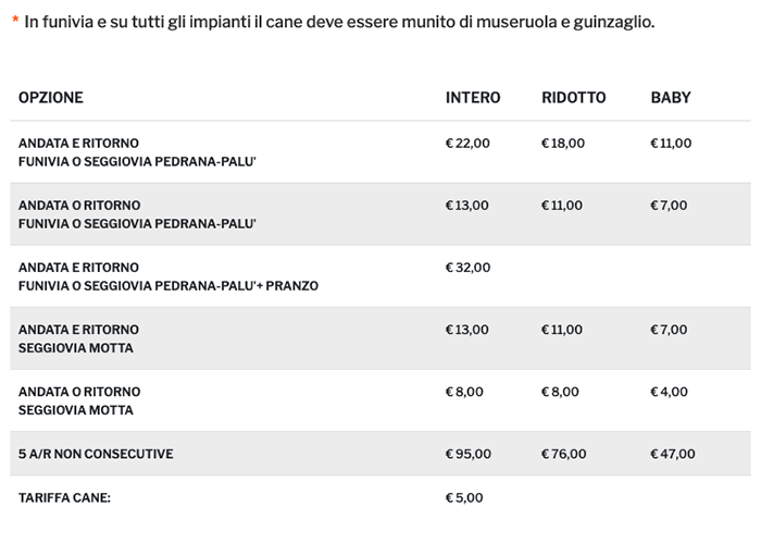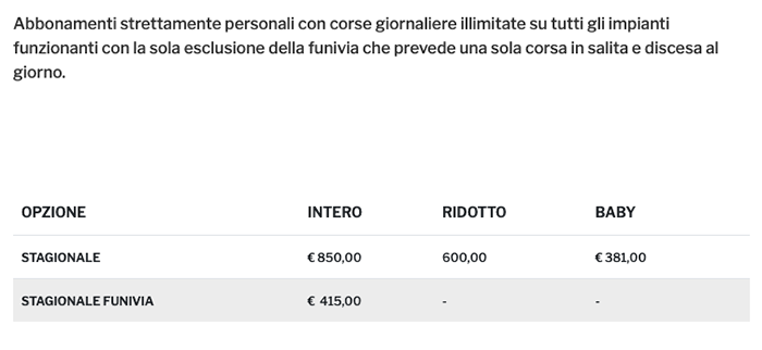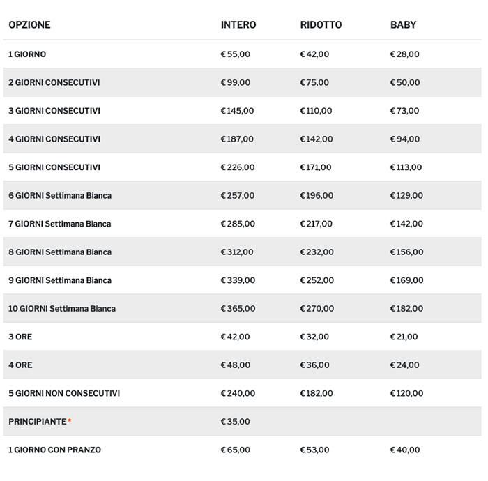 Prezzi Skipass
