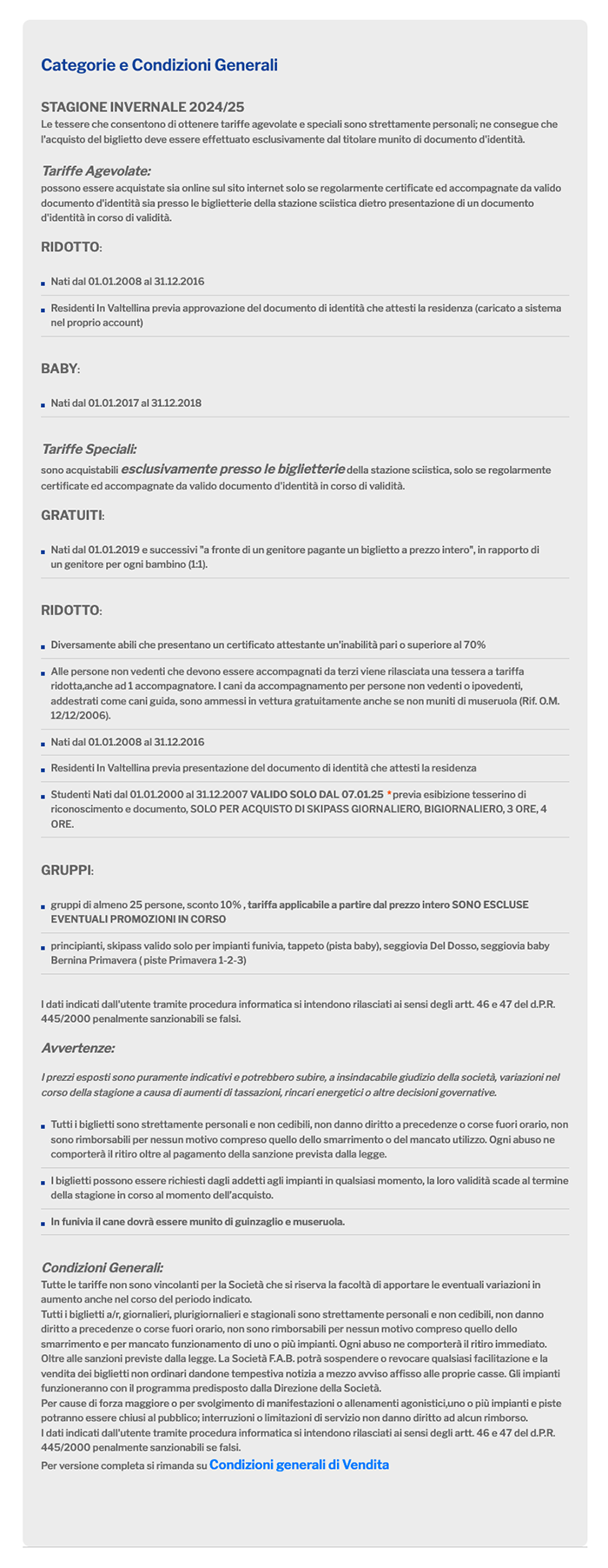 Condizioni acquisto biglietti