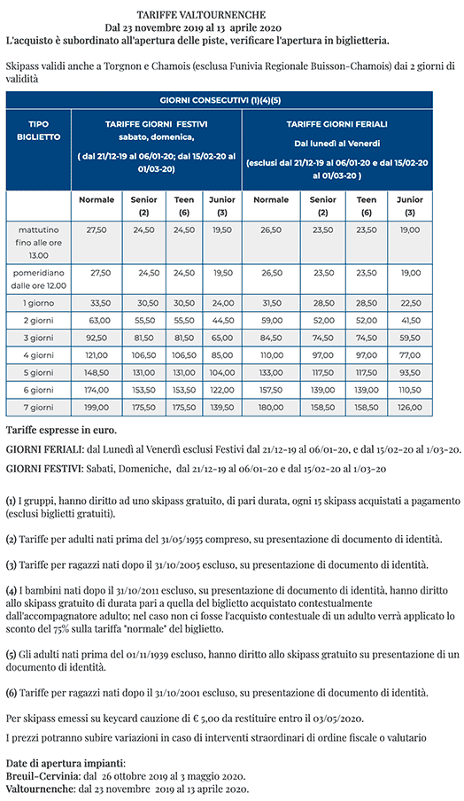Skipass Valtournenche 2019/2020