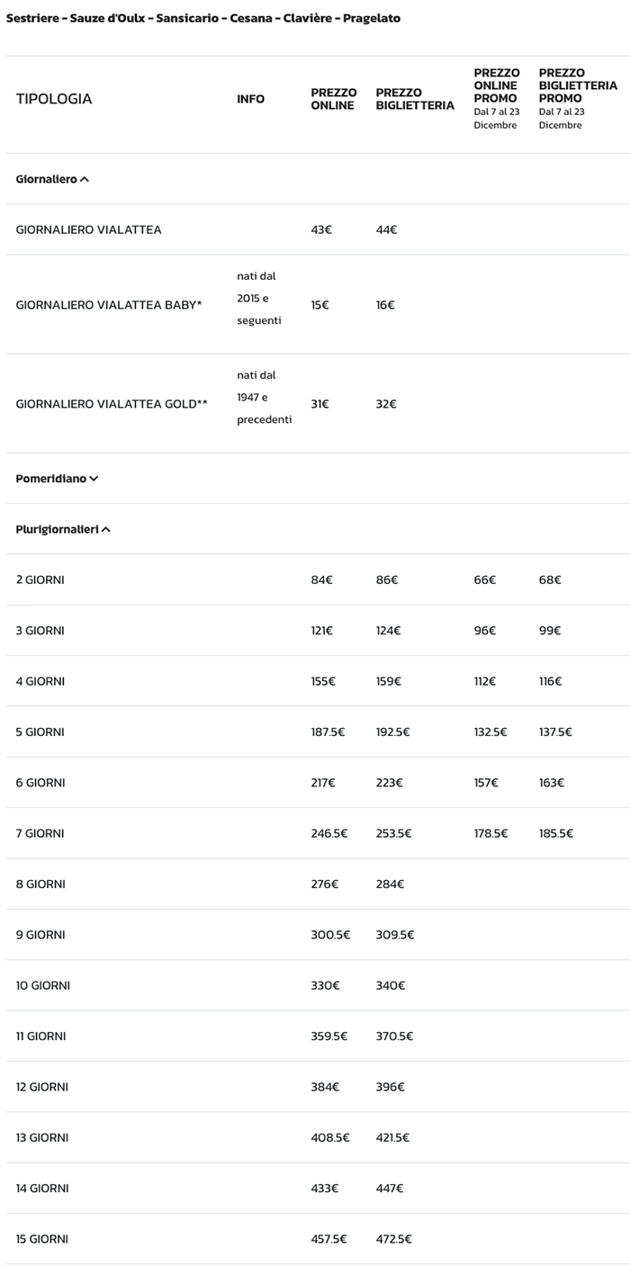 Skipass ViaLattea, Sestriere, Sauze d'Oulx, Claviere 2022/2023
