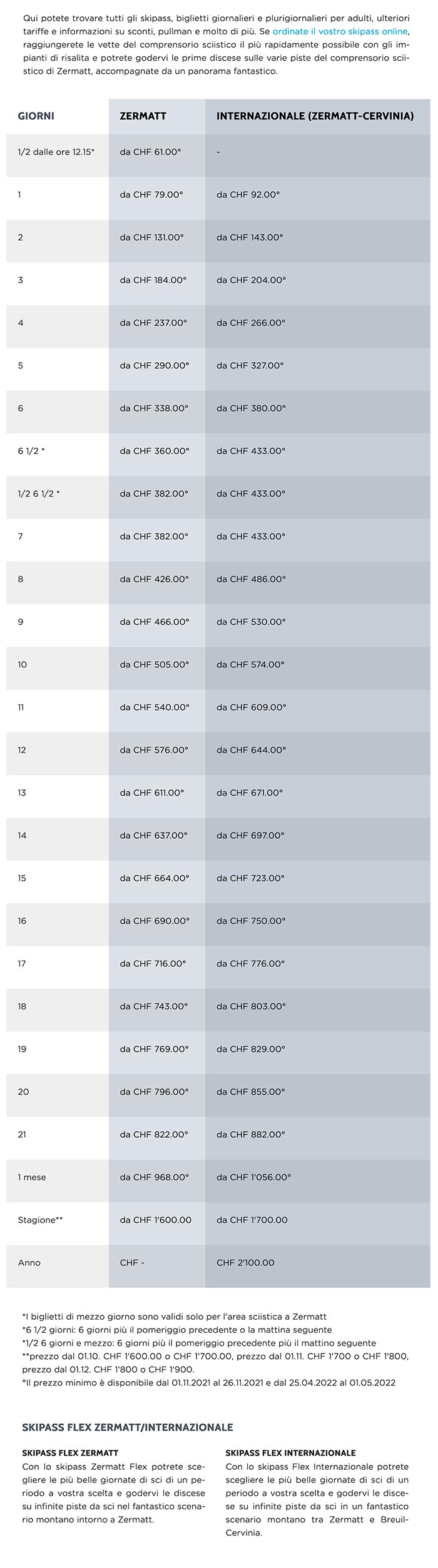 Skipass Cervinia Valtournenche Zermatt