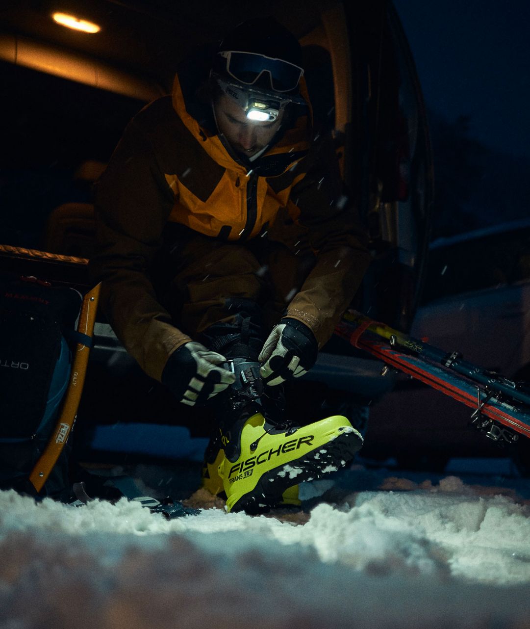 o Un set-up Fischer composto da sci, attacchi, scarponi da alpinismo, ausili per l'arrampicata e bastoncini o Prodotti partner (abbigliamento da sci alpinismo, guanti, zaino, occhiali da sci)
