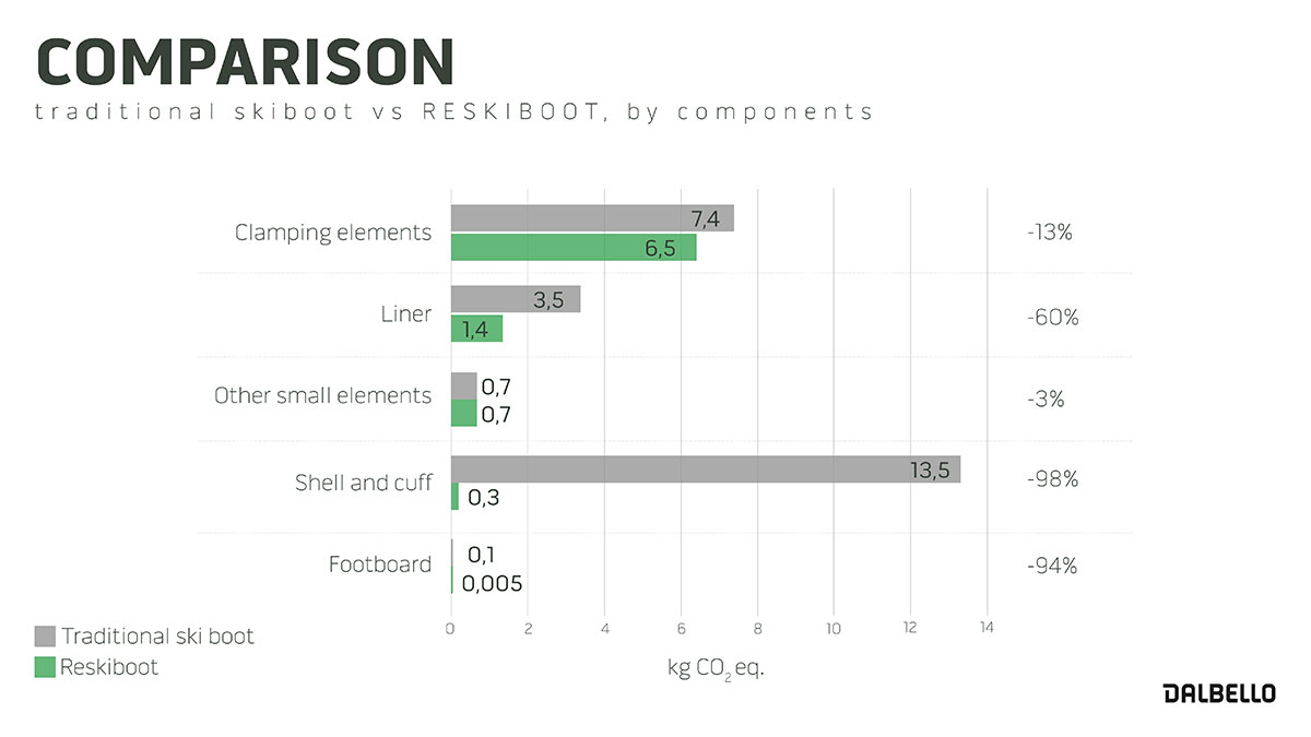 Con LIFE RESKIBOOT Dalbello e le aziende partner sono riusciti a risparmiare 3.268 chilogrammi di rifiuti e dodici tonnellate di CO2 equivalente. Inoltre è stato raggiunto l'obiettivo di ridurre del 7% il costo degli scarponi da sci. Infine, l’inclusione di una Dichiarazione Ambientale di Prodotto (EPD) con il prodotto finale LIFE RESKIBOOT stabilisce nuovi parametri di riferimento di sostenibilità nel settore dei beni durevoli per gli sport invernali, facilitando le valutazioni comparative delle prestazioni di sostenibilità tra i vari prodotti.