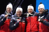 E' ottima l'Italia nella versione sperimentale con due ragazzi del 2000: Bormolini (0+2) al lancio limita i danni e Tommaso Giacomel conferma l'eccezionale impatto dell'esordio di ieri ricorrendo a una sola ricarica a terra e con un poligono ad alta velocità in piedi con il 5/5 per ritrovare gli azzurri a metà gara in settima posizione a 27.3 dalla testa della gara e a 19 secondi dal podio. Il migliore Dominik Windisch (10/10) porta l'Italia all'ultimo cambio in seconda posizione e l'esordiente assoluto Didier Bionaz non trema usando solo una ricarica per poligono chiudendo in sesta posizione a 1.46.9.