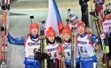 La medaglia d'oro è stata conquistata dalla Repubblica Ceca, che ha confermato sul campo di essere il quartetto più solido. Veronika Vitkova al lancio ha subito fatto la differenza, guadagnando pesantemente terreno sulle rivali dirette per il successo. Gabriela Soukalova non ha impressionato sugli sci, ma ha egregiamente recitato la propria parte coprendo tutti i bersagli. Dopodiché Michal Slesingr ha rimesso luce tra sé e gli inseguitori più pericolosi, infine Ondrej Moravec ha fatto valere le sue qualità e ha tagliato il traguardo in trionfo.