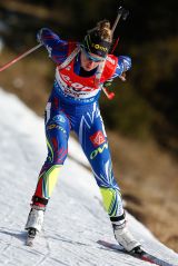 La finlandese continua a litigare con la carabina e non è andata oltre il decimo posto nonostante la seconda performance nel fondo. Va rimarcato come oggi la migliore in assoluto sugli sci stretti sia stata - per la prima volta dopo l'incidente in mountain bike del maggio 2013 - Miriam Gössner. La bavarese si è però piazzata quindicesima per via di tre errori.