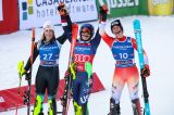 Alle spalle della campionissima americana, che sale a quota 62 perle tra i pali stretti e dice anche 154 podi totali, uno solo in meno rispetto a Ingemar Stenmark, ci sono i primi podi della carriera per Lara Colturi e Camille Rast: clamoroso quello della neo 18enne piemontese che gareggia per l'Albania (naturalmente, prima volta in top-3 per qualsiasi atleta del paese balcanico), se pensiamo che fino ad oggi aveva il 9° posto di Flachau, ad inizio 2024, quale best e non aveva cominciato benissimo tra Soelden e Levi. Oggi Lara è stata sensazionale, con una pulizia d'azione fantastica in entrambe le manche, risalendo così dal 4° (col pettorale 27 era a 61 centesimi da Shiffrin e vicinissima al podio di Liensberger) sino al 2° finale a 0”55 dalla dominatrice assoluta, con due centesimi di margine sull'elvetica.
