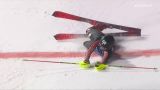 Guida la leader di specialità e della generale, che cerca l'ottavo sigillo in questa località (e il tris in slalom nell'annata): partita col numero 1, Shiffrin sfrutta bene, pur non prendendosi alcun rischio su un tracciato angolato come quello disegnato da Mauro Pini, tecnico della sua principale rivale, una pista ancora buona visto che il manto ha presto ceduto. Temperature alte, nevischio e condizioni tutt'altro che buone, ma Vlhova partendo col 2 si è comunque salvata, pur commettendo una sbavatura importante poco prima del secondo intermedio (arrivando ad accumulare 38 centesimi di ritardo), per chiudere a 0”17 e potersi giocare ancora tutto.