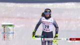 Un centesimo davanti al duo Liensberger-Swenn Larsson, una discreta Paula Moltzan 7^ a 95 centesimi, decimo crono invece per Dzenifera Germane che, dopo l'errore di Soldeu, torna subito in quota e paga solo 1”06, regolando una strepitosa Aicher (11^ a 1”09 col pettorale 39, ma la pista ha retto davvero alla grande), Meillard a 1”11, a sua volta davanti al trio sloveno composto da Slokar, Dvornik e Bucik, con Rast solo 16^ a 1”30 e con un centesimo su Hector, anch'essa in parte delusa dalla prima manche.
