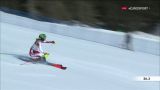 Mentre il Mondiale di Michelle Gisin si chiude con un'inforcata, Wendy Holdener è terza ma con 1”24 da recuperare; dietro Shiffrin due inserimenti come quello di Ana Bucik che, col pettorale 20, è bravissima a piazzarsi quinta (+ 1”39), e di Camille Rast sesta a 1”67. Ecco poi Lena Duerr settima a 1”96, a precedere di 1 solo centesimo Asa Ando (che manche della giapponese, quest'anno davvero cresciuta) e di 6 Nastasia Noens (a 2”02 col n. 21), con Emelie Wikstroem e Chiara Mair appaiate in 10^ posizione a 2”03, Kristin Lysdahl a 2”05 e la prima canadese, Laurence St-Germain che è 13^ a 2”09 davanti a Gritsch, Hector e Meillard.