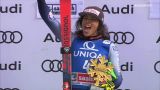 Federica Brignone fa festa nell'ultimo gigante femminile: rivivi il podio e l'inno