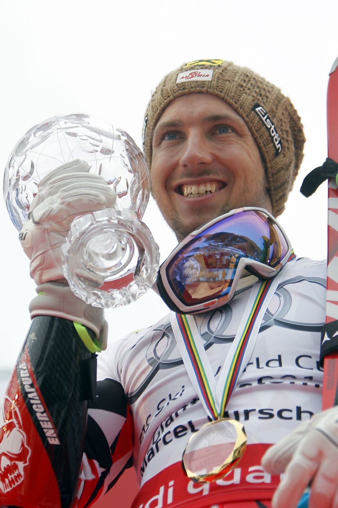 Dopo la discesa delle finali di Coppa sui pendii di casa, sono ben 135 i punti da recuperare a Beat Feuz. Hirscher inventa un capolavoro in super-g, concludendo 3° (primo podio in carriera nella specialità, alla quarta gara), poi due giorni più tardi opera il sorpasso sullo svizzero piegando i connazionali Reichelt e Mathis nel gigante che risulterà decisivo.
