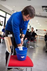Poi siamo stati portati a toccare con mano cosa è il Goretex: la membrana bianca porosa di cui vi parlavo. Ci è stato fornito un guanto di plastica (più pesante di quelli del bancone della frutta del supermercato, per intenderci) e uno di puro Goretex. Ci è stato chiesto di indossarli e ascoltare una piccola presentazione sull'azienda.Dopo cinque minuti la mano con il guanto di plastica era sudatissima, stile sauna. Quella col guanto bianco invece era asciutta: traspirabilità eccellente. Poi siamo stati invitati a infilare in un secchio d'acqua le mani: magicamente l'impermeabilità del Goretex era pari a quella della plastica!