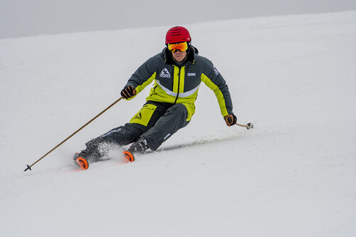 Nel TEST IN PISTA Mattasoglio e Rossi confermano le sensazioni della prova a secco, con la facilità in ingresso curva agevolata dalle plastiche costruite in blocco unico. Bertolini ribadisce la comodità dello scarpone per chi non ha ambizioni di performance. Magri non è molto soddisfatto, buono l’appoggio frontale del gambetto, negativo il piede largo in pianta. Marinetti ribadisce il comfort: a livelli bassi si comporta discretamente, aumentando l’intensità fatica a inizio curva ed in fase d’inclinazione.