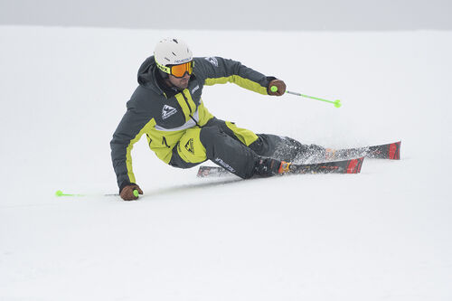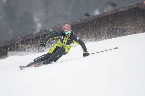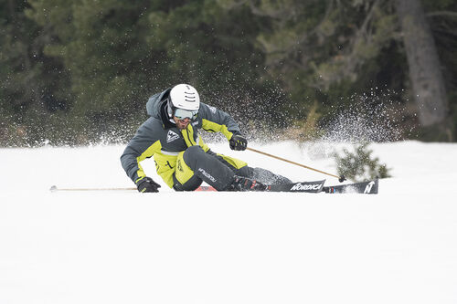 Nel TEST IN PISTA Magri trova il collo del piede un po’ troppo stretto, sebbene apprezzi l’appoggio laterale in curva. Marinelli su neve trasformata lo trova intuitivo su curve ampie e bassi livelli mentre aumentando l’intensità perde precisione sul gambetto. A Bertolini dà sicurezza sia alle basse che alte velocità, lo consiglia allo sciatore medio in progressione che vuole sciare tutto il giorno.