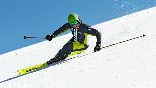 L’ingresso curva è particolare, è l’aspetto che più è cambiato oltre alla rigidità della struttura. L’impulso è minore e l’ingresso è meno diretto del modello precedente, “richiede una buona energia per sfruttarlo appieno” (Giordano Magri) ma durante la prosecuzione di curva si apprezza “la continuità di deformazione e la risposta elastica: lo senti morbido ma allo stesso tempo attaccato a terra” chiude l’istruttore Stefano Belingheri, che promuove a pieni voti gli sforzi dei tecnici Head.